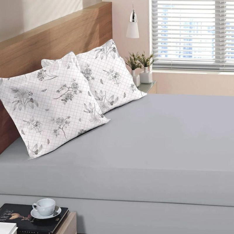 Casa e DecoraçãoCama, Mesa e BanhoJogo de lençolJogo de Cama Queen Size Buettner 150 Fios 3 Peças New Botanic Cinza