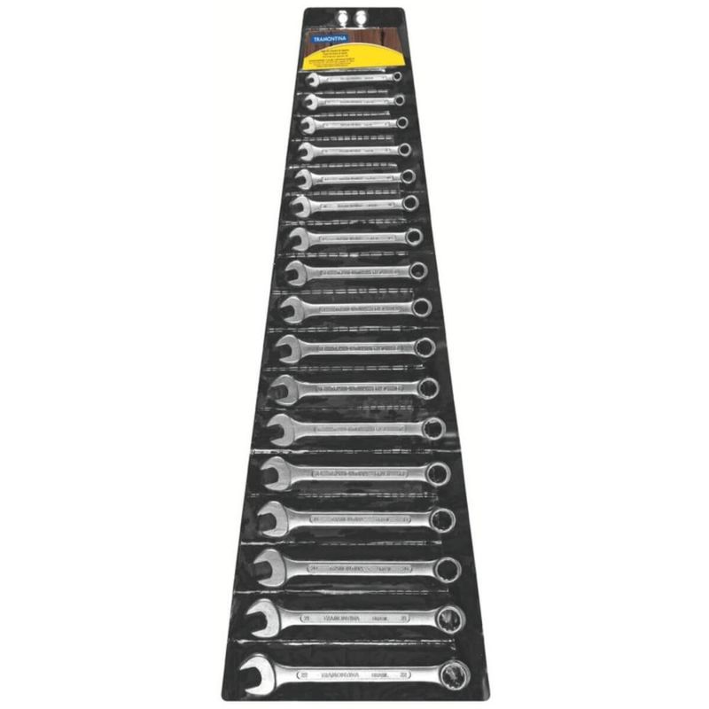 Jogo de Chaves Combinadas 17 Pçs em Aço Especial Tramontina Basic Cromado Mecânica Oficina REF: 7891114094244