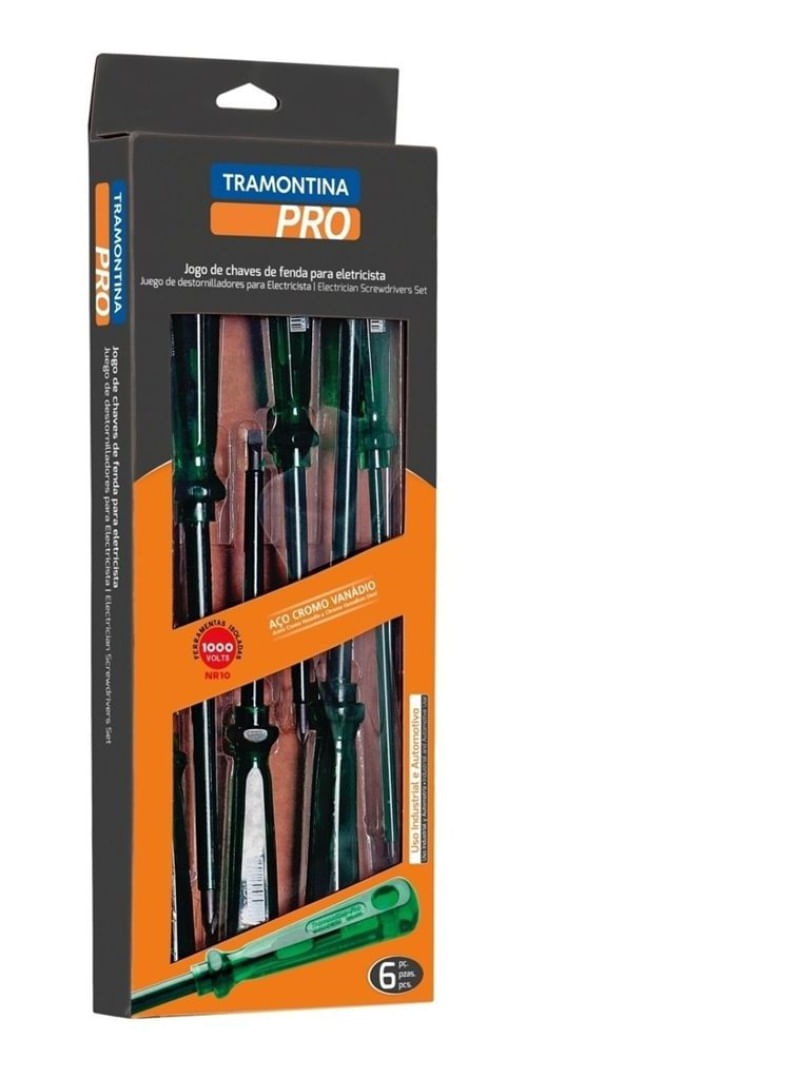 Ferramentas e ConstruçãoFerramentasAcessórios para FerramentasJogo De Chaves De Fenda Para Eletricista 6 Peças Tramontina Pro
