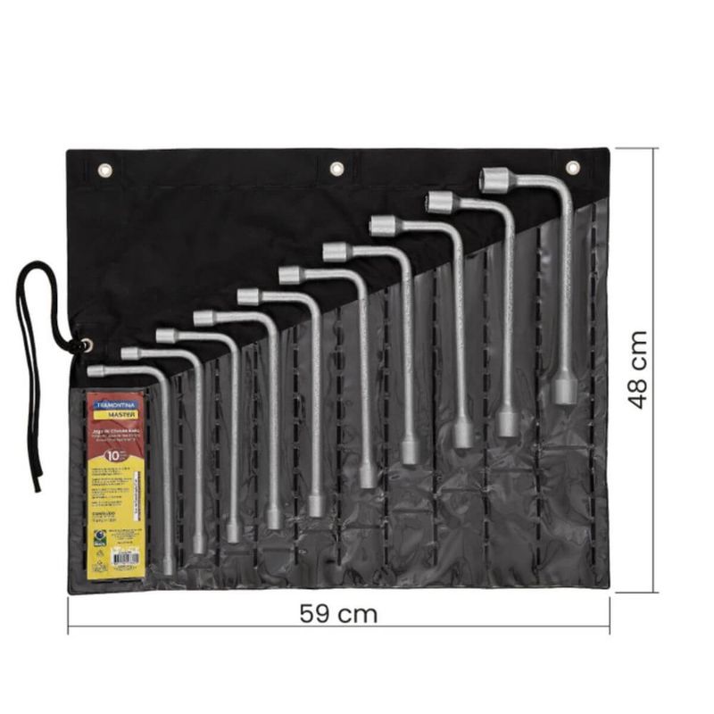 Jogo de Chaves L Biela 10 Peças Aço Especial Cromado Master Tramontina Mecânica Oficina REF: 7891114176629
