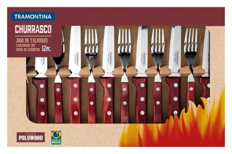 Jogo de Churrasco Jumbo Tramontina Cabo Polywood Vermelho 12 Peças REF: 7891112253377