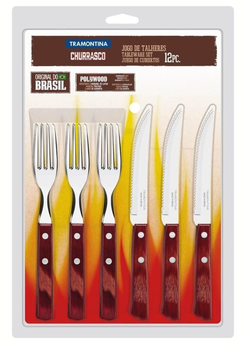 Jogo de Churrasco Tramontina Polywood 12 Peças com Cabo Vermelho REF: 7891112015647