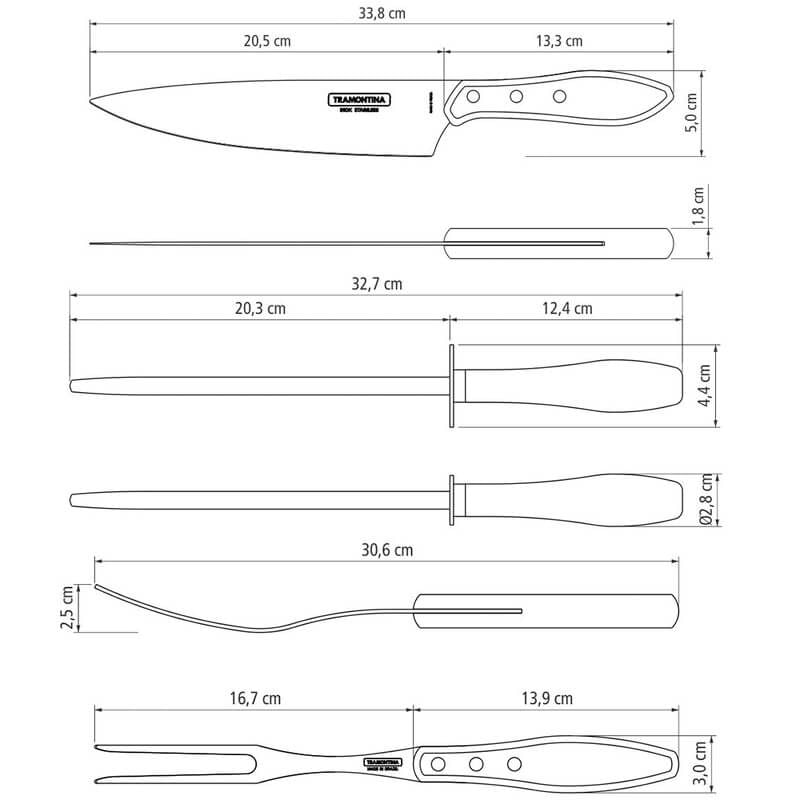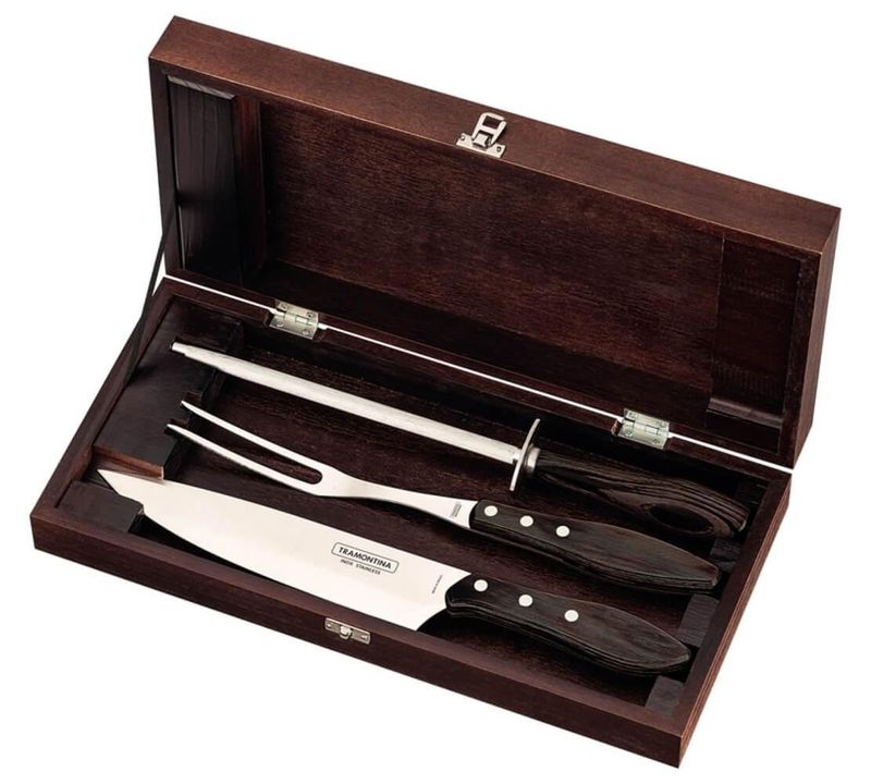 Jogo de Churrasco Tramontina Polywood Castanho e Estojo 4 Peças REF: 7891112175082