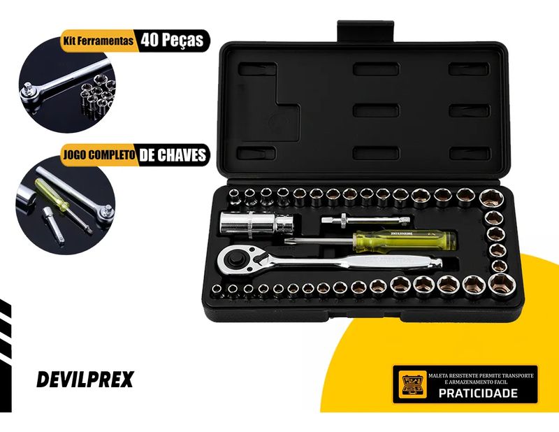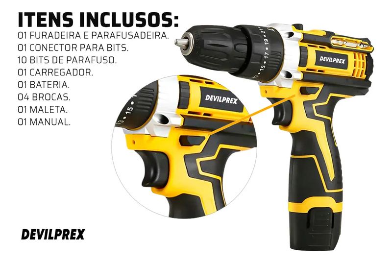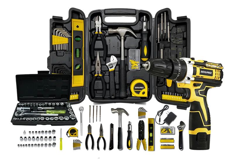Jogo De Ferramentas 169 Peças Com Maleta E Furadeira Parafusadeira Sem Fio A Bateria 12v Devilprex REF: 921854_Sicredi
