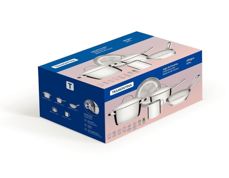 Casa e DecoraçãoUtilidades DomésticasJogo de PanelasJogo de Panelas 5 Peças Allegra em Aço Inox com Fundo Triplo - Tramontina