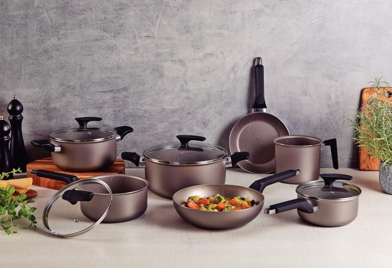 Jogo de Panelas Tramontina Milazzo Amêndoa Alumínio com Revestimento Antiaderente Starflon Max 7 Peças REF: 7891112343719