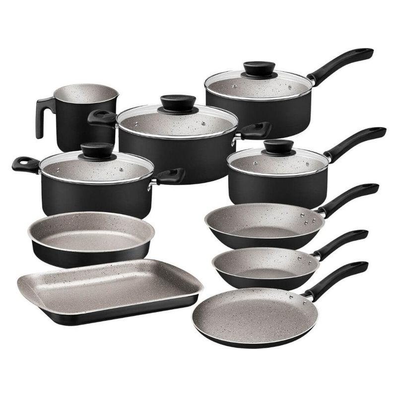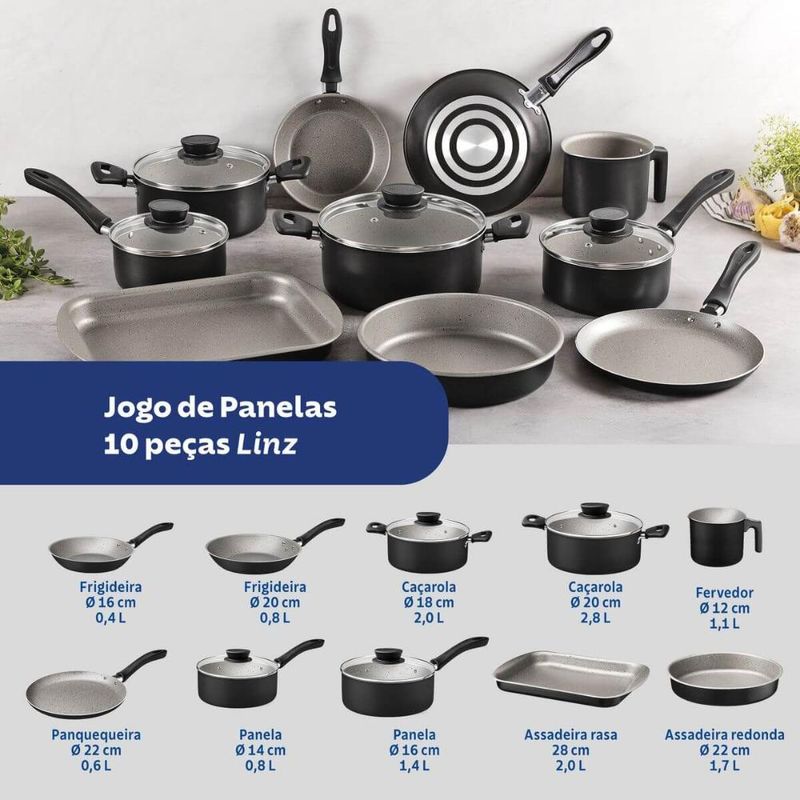 Jogo de Panelas Tramontina Preto 10 Peças em Alumínio Antiaderente Starflon Max Tampa de Vidro REF: 7891112345232