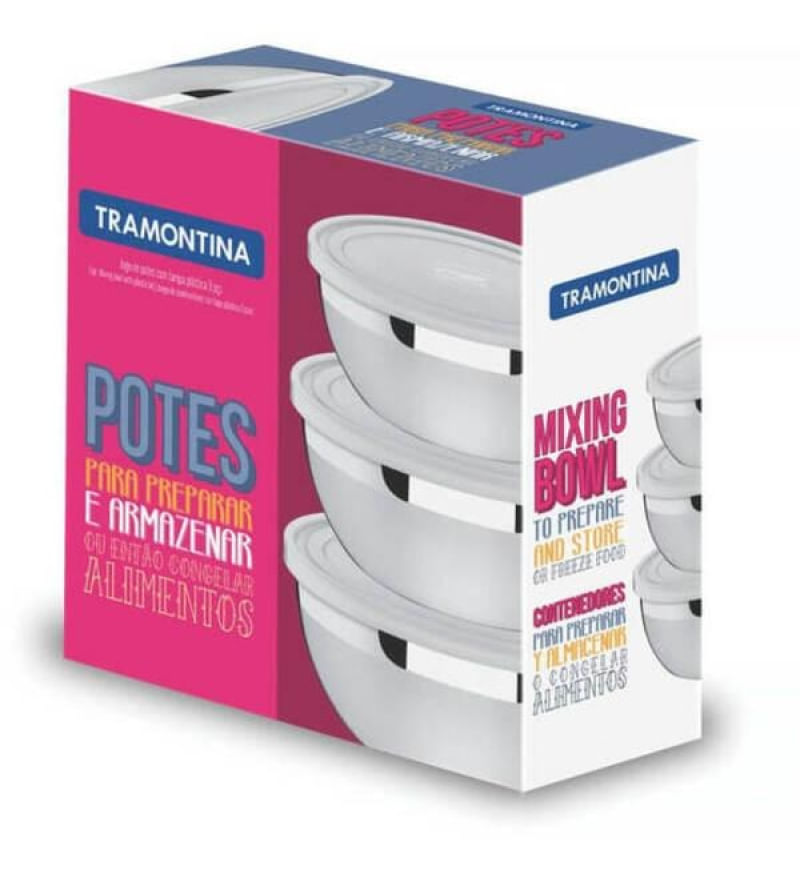 Jogo de Potes Tramontina Freezinox Aço Inox com Tampa 3 Peças REF: 7891116080689