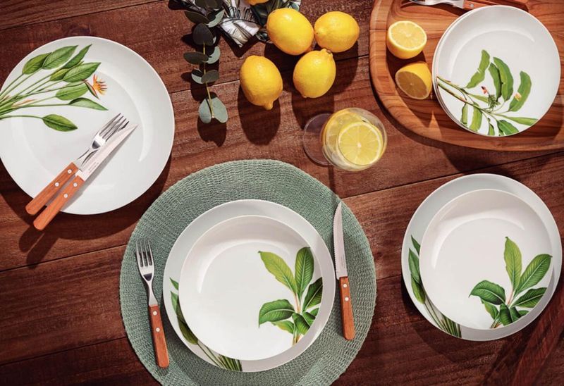 Casa e DecoraçãoUtilidades DomésticasAparelhos para JantarJogo de Pratos Tramontina Graziela em Porcelana Decorada 12 Peças