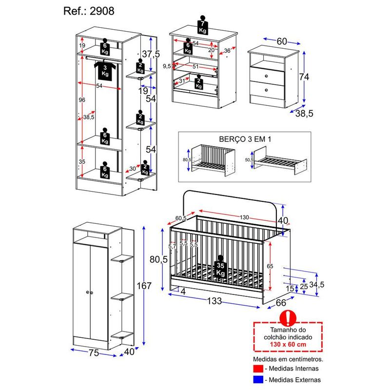 Casa e DecoraçãoMóveisQuarto completoJogo De Quarto Infantil Trevalla Móveis Pom Pom 3 Peças