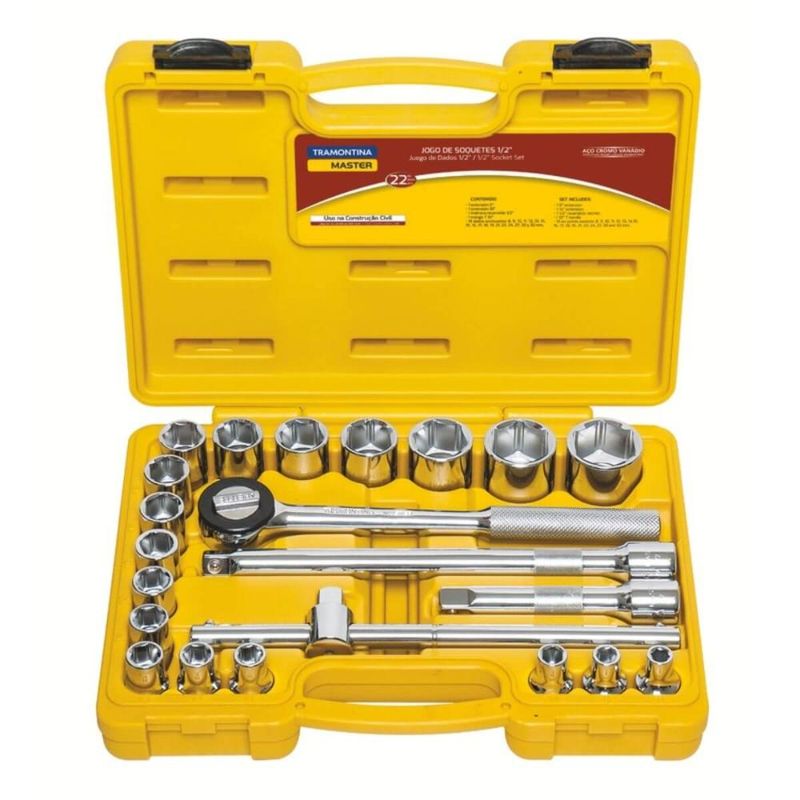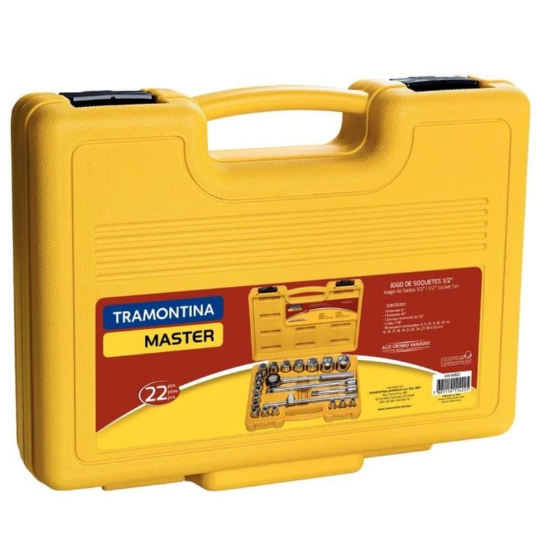 Jogo de Soquetes Sextavados Catraca Aço Crv Maleta 22 Peças Encaixe 1/2" Master Tramontina REF: 7891114114225