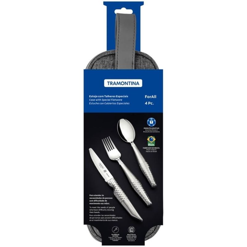 Jogo de Talheres Assistivos Tramontina ForAll 4 Peças em Aço Inox REF: 7891112336650