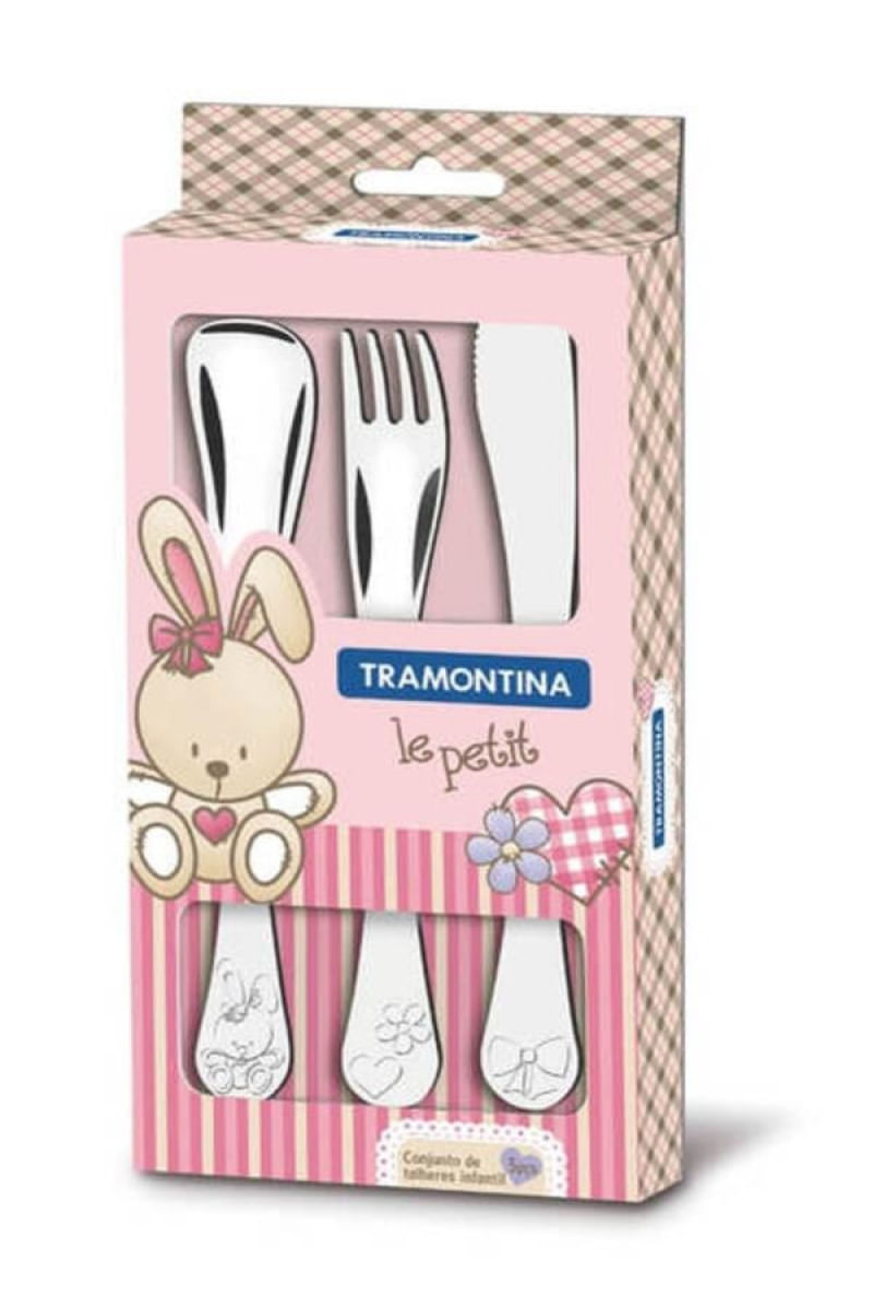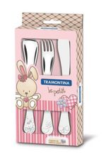 Jogo de Talheres Infantil Tramontina Le Petit em Inox Desenho em Alto Relevo 3 Peças REF: 7891116075494