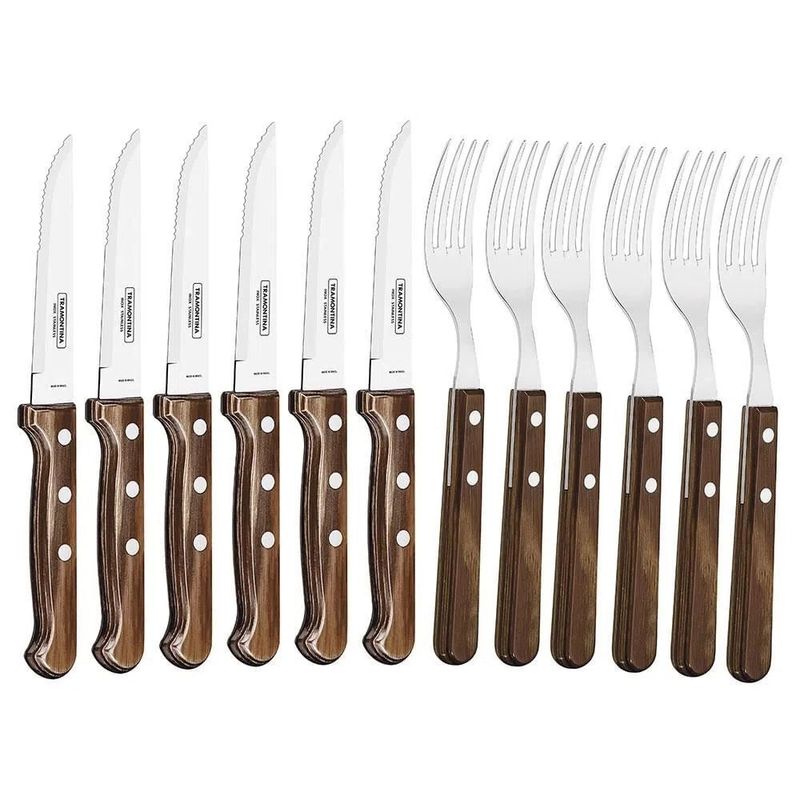 Casa e DecoraçãoUtilidades DomésticasUtensílios de ChurrascoJogo de Talheres Jumbo Tramontina Churrasco Inox Cabos de Madeira Polywood 12 Peças