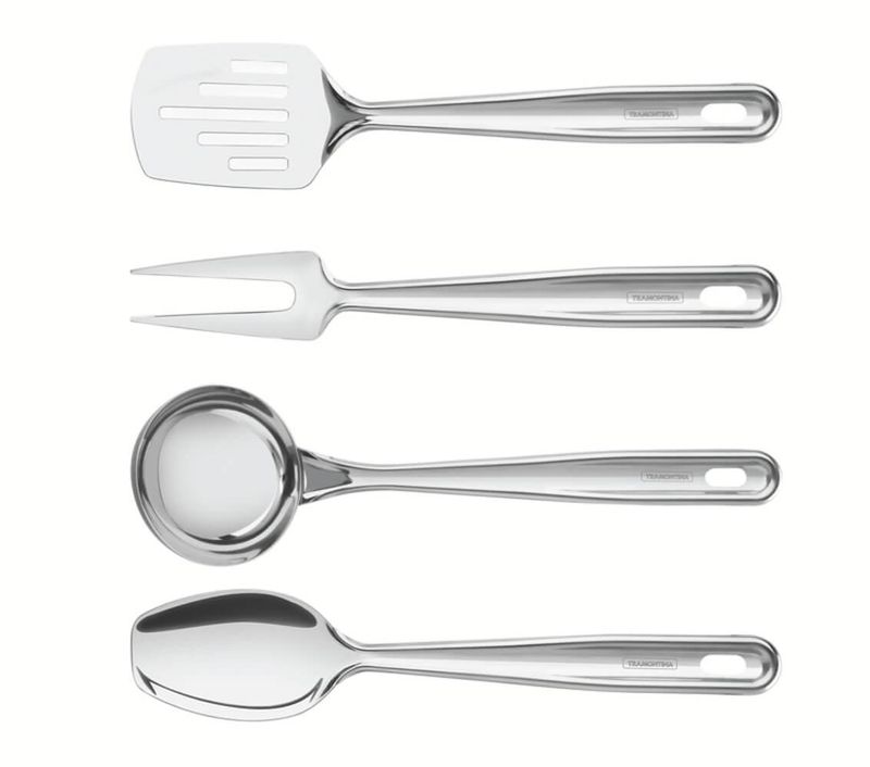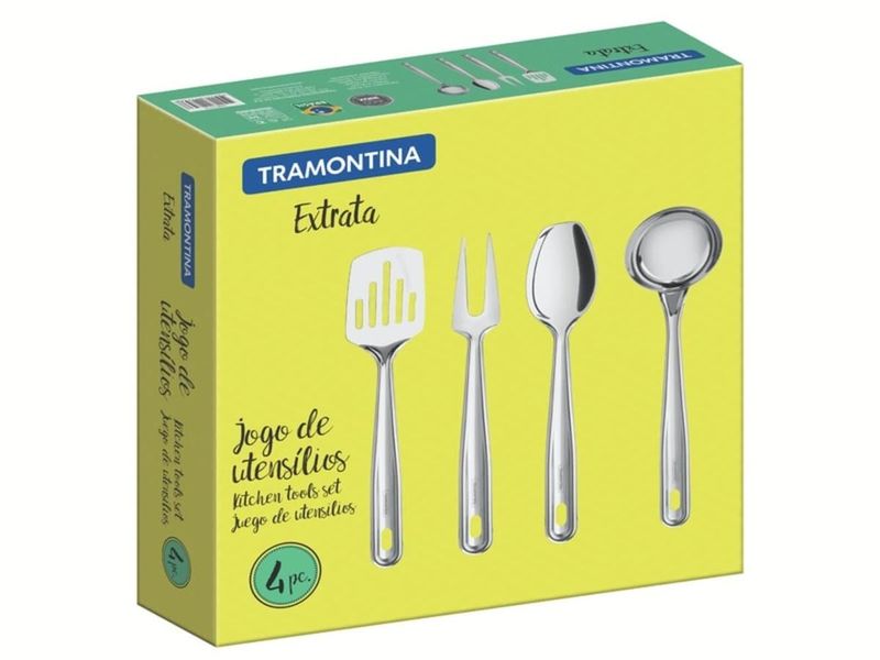 Jogo de Utensílios Tramontina Extrata em Aço Inox 4 Peças REF: 7891116117538