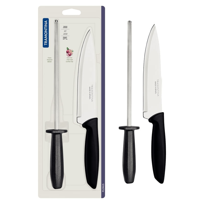 Jogo Faca/Chaira Inox 2 Peças Plenus Preto Tramontina REF: 226295_Sicredi