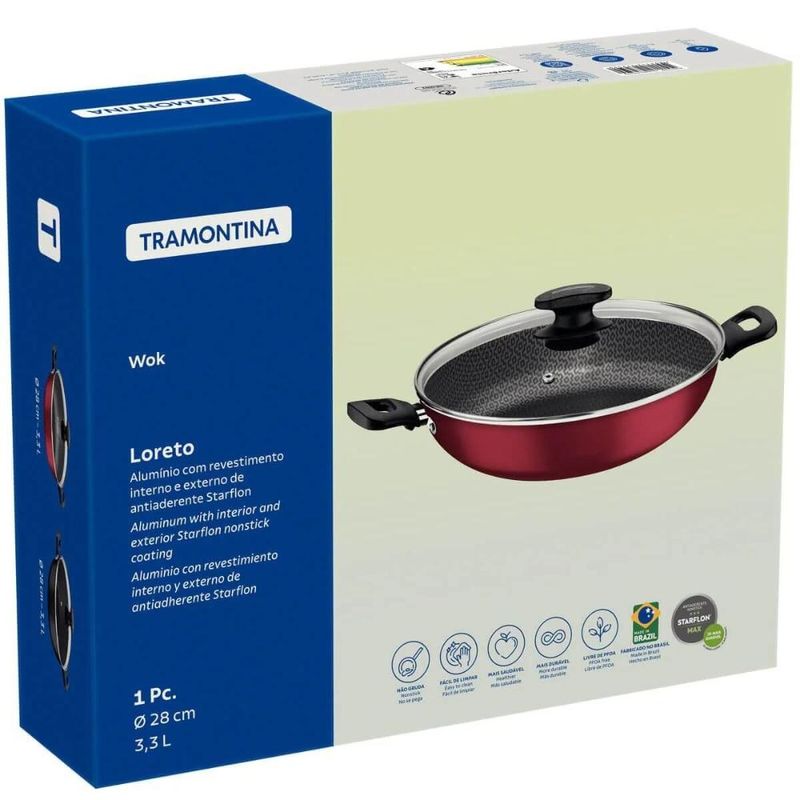 Jogo Frigideira Funda e Wok Alumínio Antiaderente Tramontina Loreto 3,3L Vermelho REF: 7794465496715