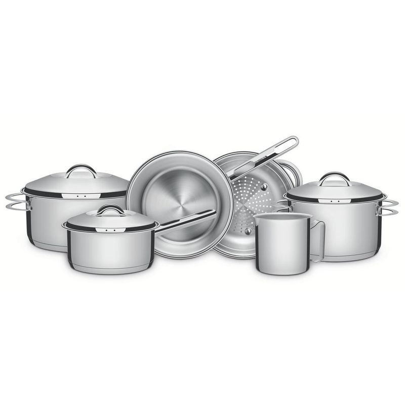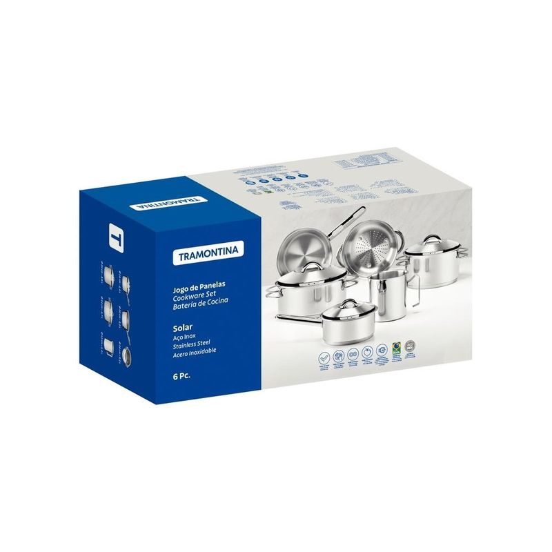 Casa e DecoraçãoUtilidades DomésticasJogo de PanelasJogo Panelas Tramontina Solar Inox 6 Peças Fundo Triplo