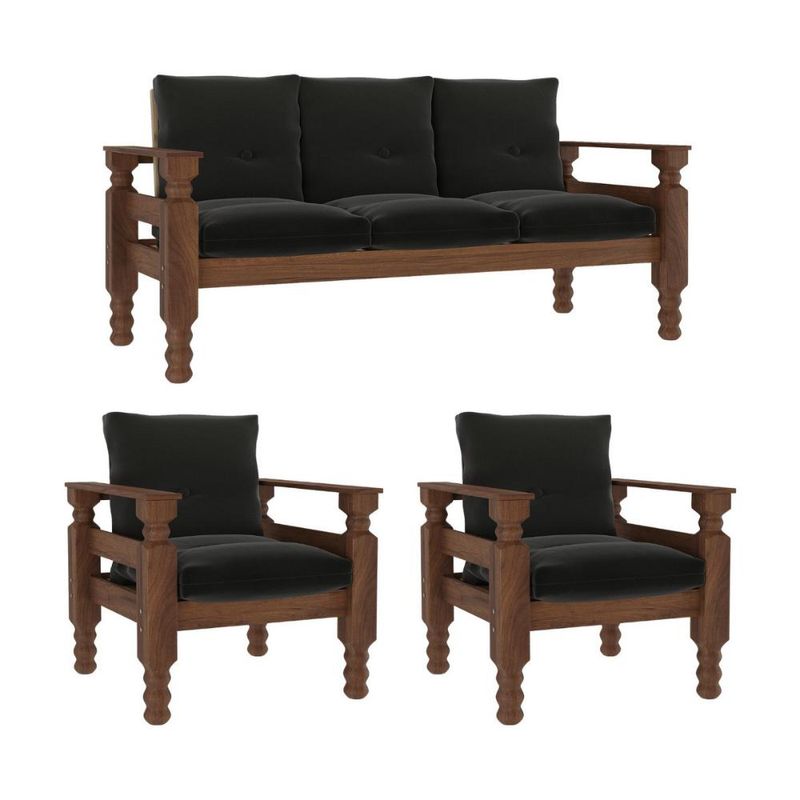 Jogo Sofá Madeira Maciça 3 Lugares e 2 Poltronas Liz Multimóveis CR7001 Grafite REF: 7899390841477