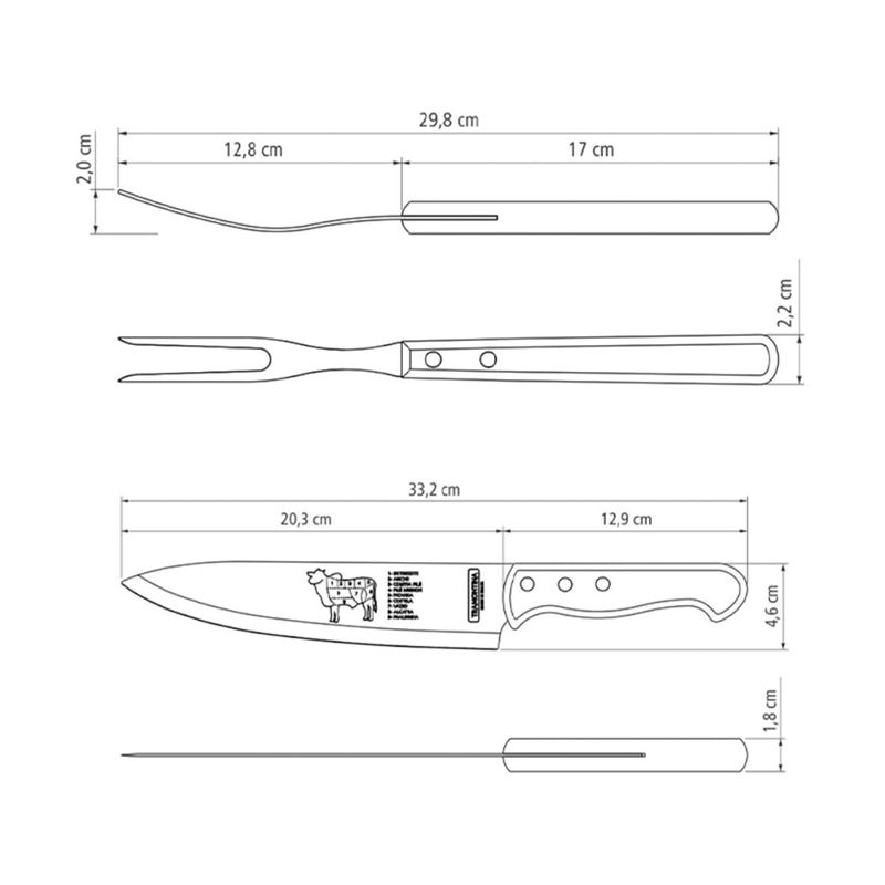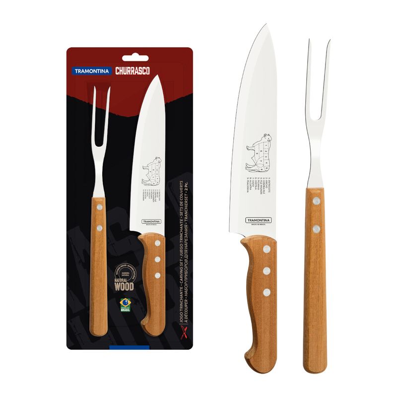 Jogo Trinchante Churrasco Tramontina Aço Inox e Cabos de Madeira Natural 2 peças REF: 7891112253452