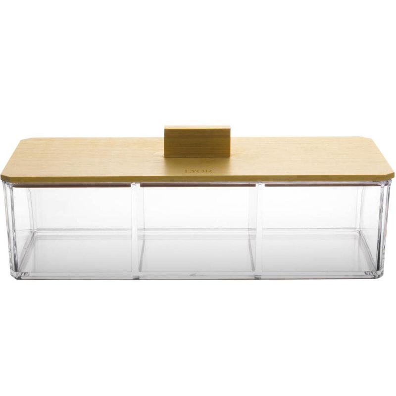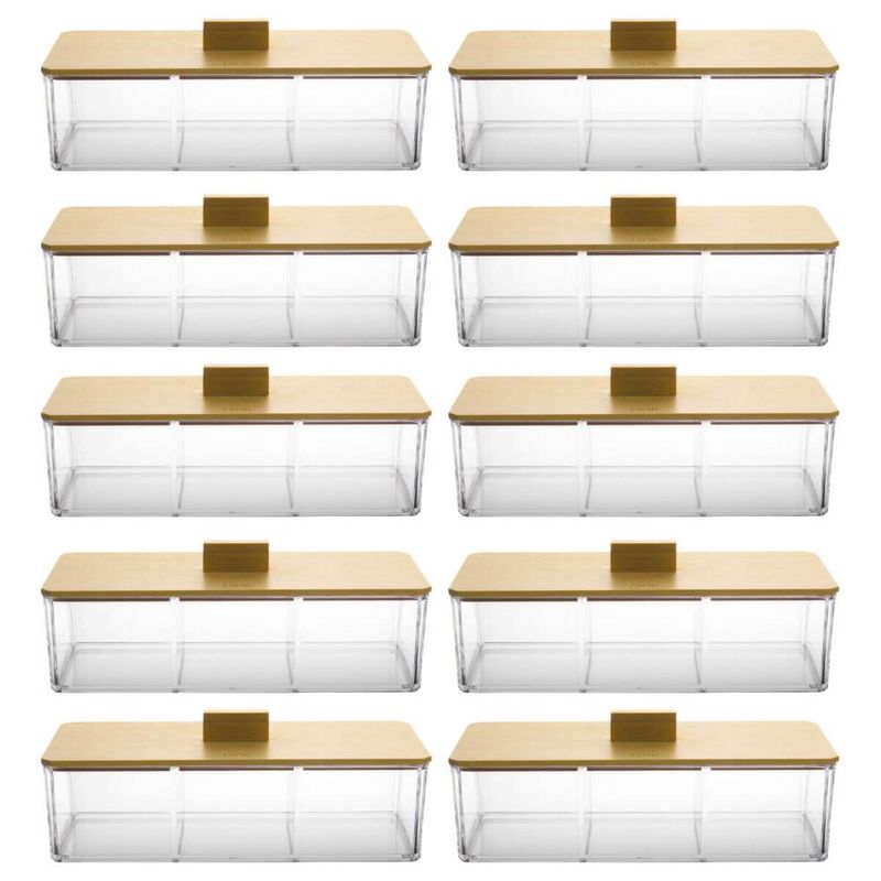 Kit 10 Caixas para Chá Tampa Bambu Organizador 3 Divisórias Escritório Higiene Joias Lyor REF: 7794463533979
