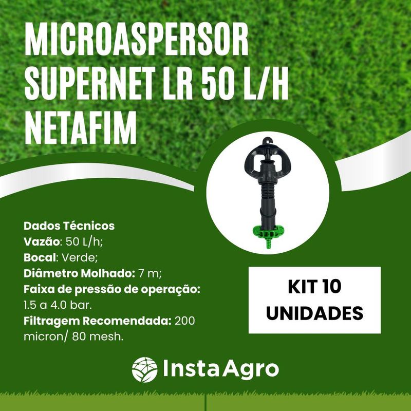 AgroVeículos e MaquináriosAdubaçãoKit 10 Microaspersores Supernet Lr 50 L/h Netafim (cabeça)