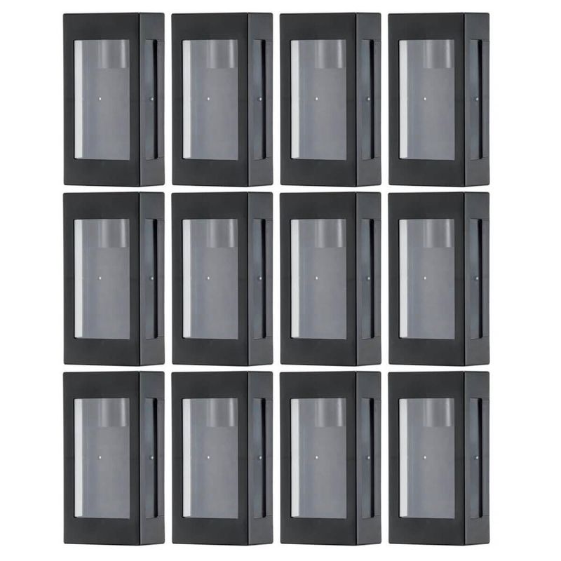 Casa e DecoraçãoDecoraçãoIluminaçãoKit 12 Luminárias de Parede Arandelas Externas Prime Pretas Bivolt Jardim Fachada Muro Dital