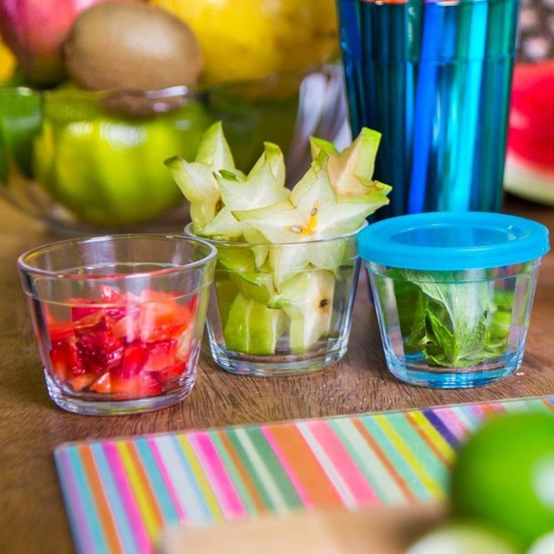 Casa e DecoraçãoUtilidades DomésticasKit 12 Potes Americanos Tigelas Pequenas de Vidro 150ml Marinex com Tampa Plástica Colorida