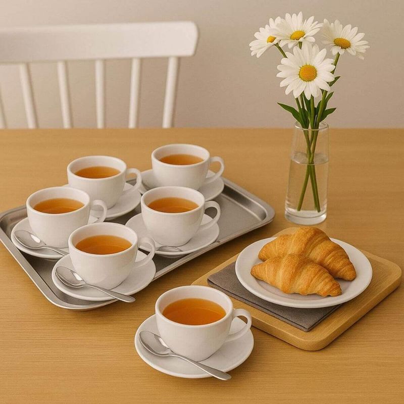 Kit 12 Xícaras de Chá com Pires Porcelana 250ml Tramontina Maria Augusta Café Padaria REF: 7794464755264