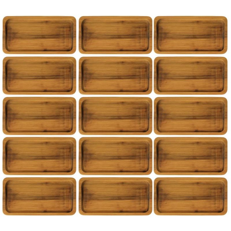 Casa e DecoraçãoUtilidades DomésticasAcessórios para ServirKit 15 Bandejas Madeira Teca 20x10cm Tábuas Petisqueira Frios Servir Restaurante