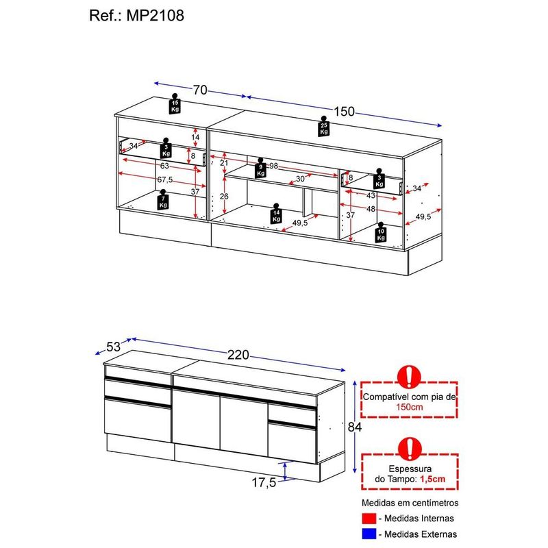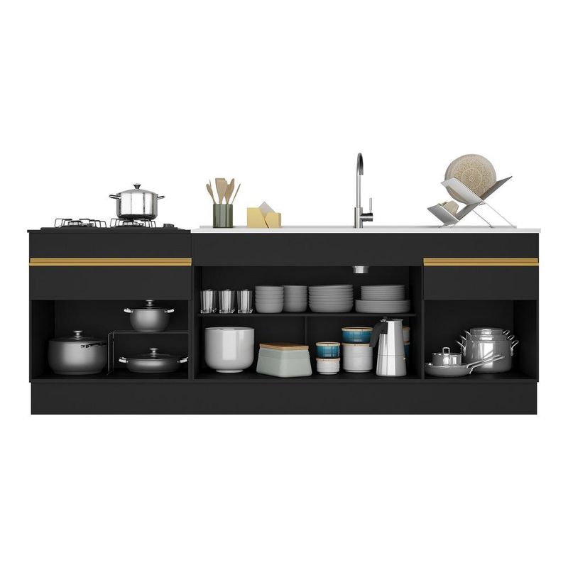 Casa e DecoraçãoMóveisBalcão e GabineteKit 2 Balcões com Rodapé Gabinete Pia 150 cm e Cooktop 70 cm Veneza GB Multimóveis MP2108 Preto