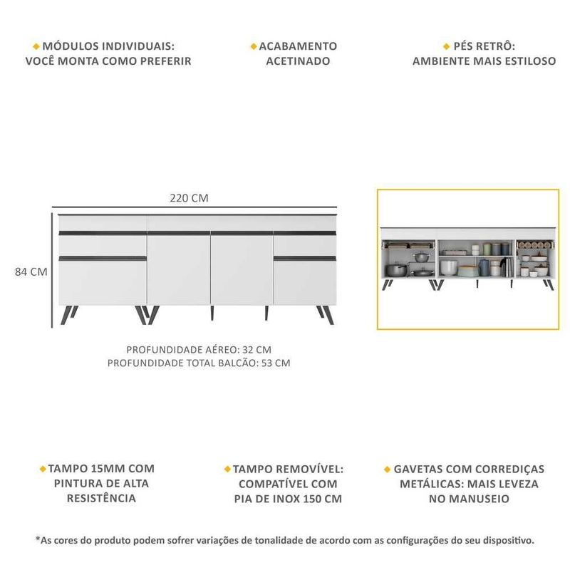Kit 2 Balcões Gabinete Pia 150 cm e Cooktop 70 cm Veneza Multimóveis MP2073.964 Branco REF: 764853_Sicredi