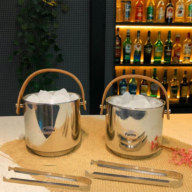 Kit 2 Baldes de Gelo Térmico Inox 2,3l Alça em Couro Com Peg REF: 7794465216368