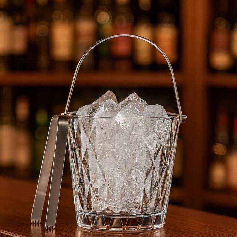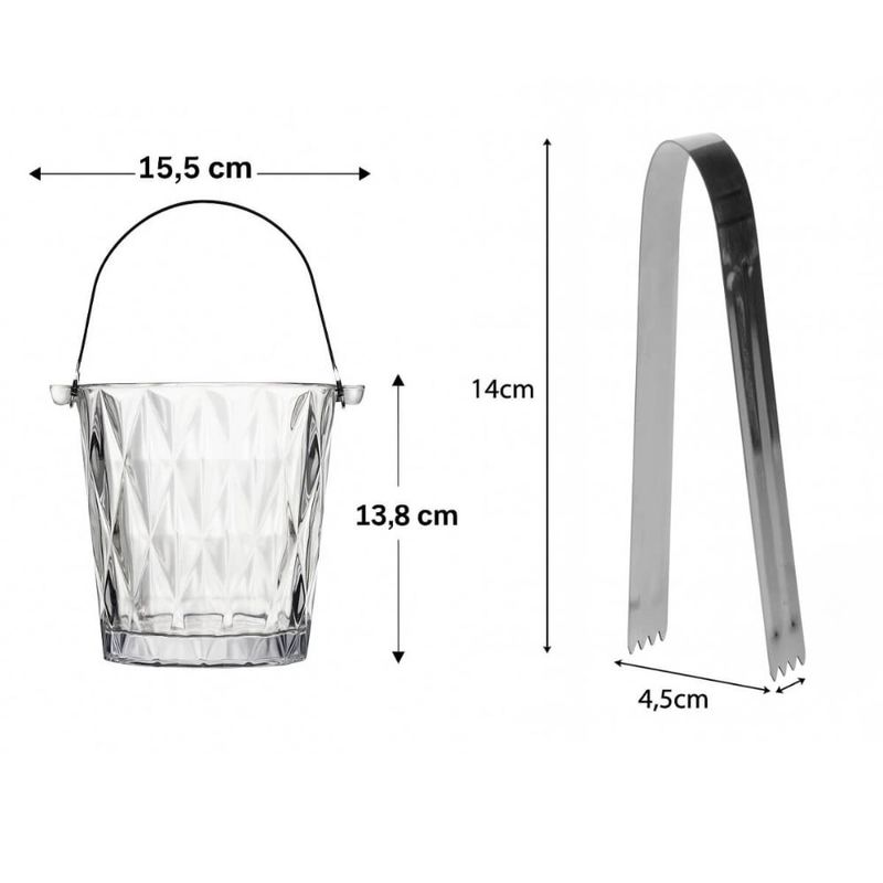 Kit 2 Baldes Gelo com Alça e Pegador Diamond 1L Vidro Lyor Baldinho Cerveja Drinks REF: 7898775143182