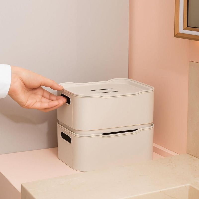 Casa e DecoraçãoDecoraçãoOrganizadoresKit 2 Caixas Organizadoras Pequenas 1,7L com Tampa Bege Coza Lavanderia Despensa