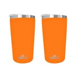 Casa e DecoraçãoUtilidades DomésticasCopos, Taças e CanecasKit 2 Copos Térmicos Aço Inox 420ML Laranja p/ Água Cerveja Café - Quente e Frio