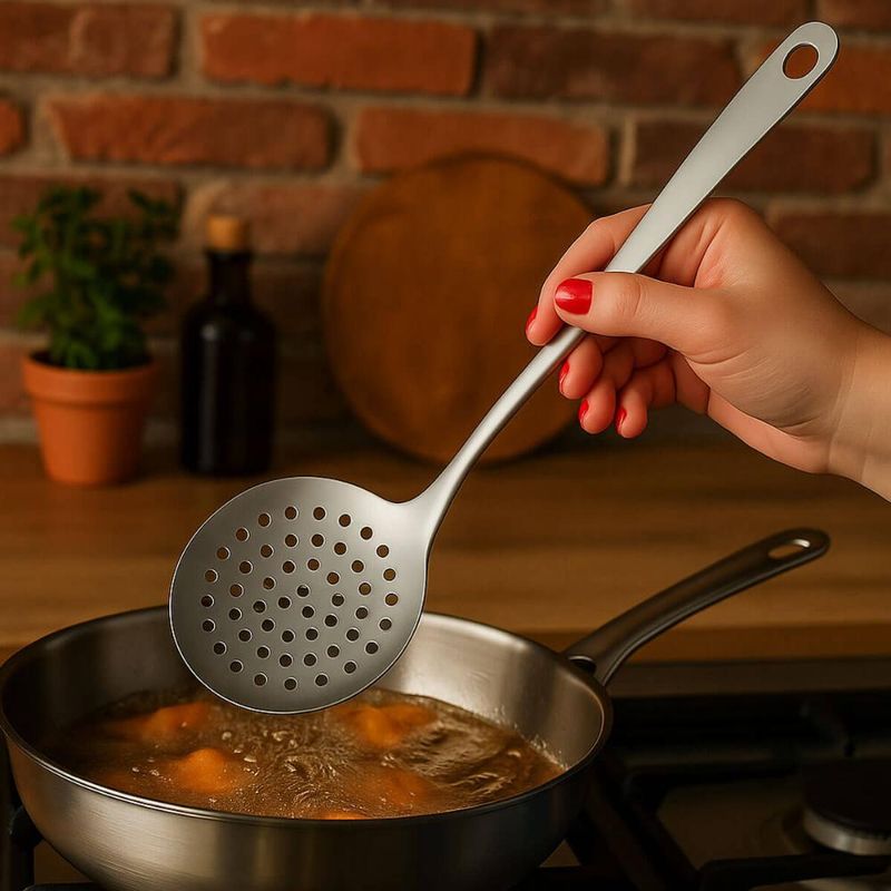 Casa e DecoraçãoUtilidades DomésticasAcessórios para ServirKit 2 Escumadeiras Fritura Aço Inox 33cm Espumadeira Grande Pastelaria Lanchonete