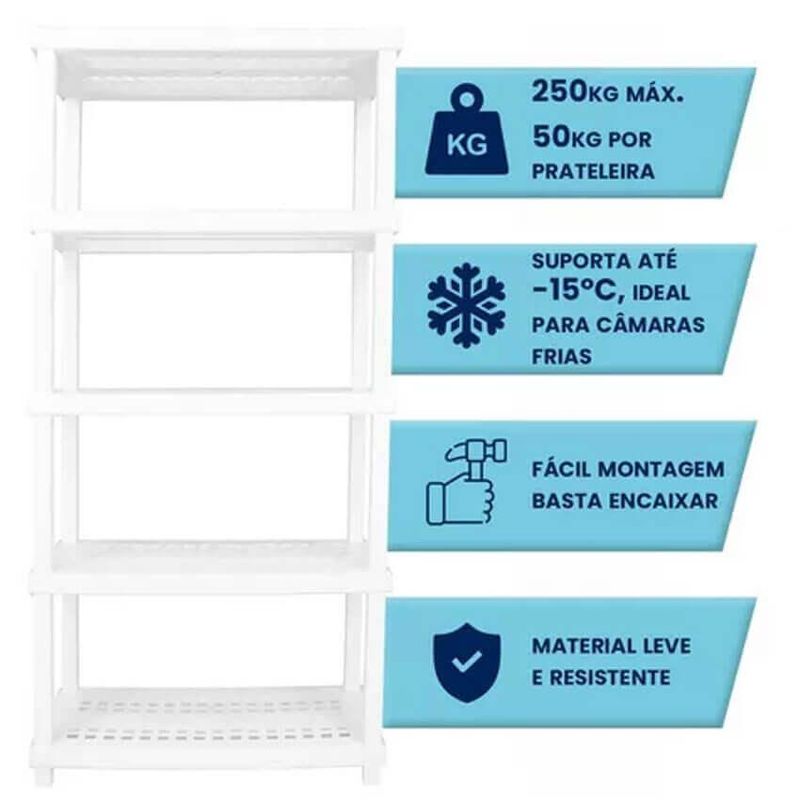 Kit 2 Estantes Modular 5 Prateleiras Câmara Fria Até 250kg Multiuso Ordene Branca Plástica REF: 7798140425779