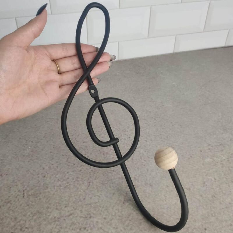 Kit 2 Ganchos Cabideiros Aço Preto Cifra Música 28cm Suportes de Parede Pendurar Roupa Bolsas REF: 7794462903599
