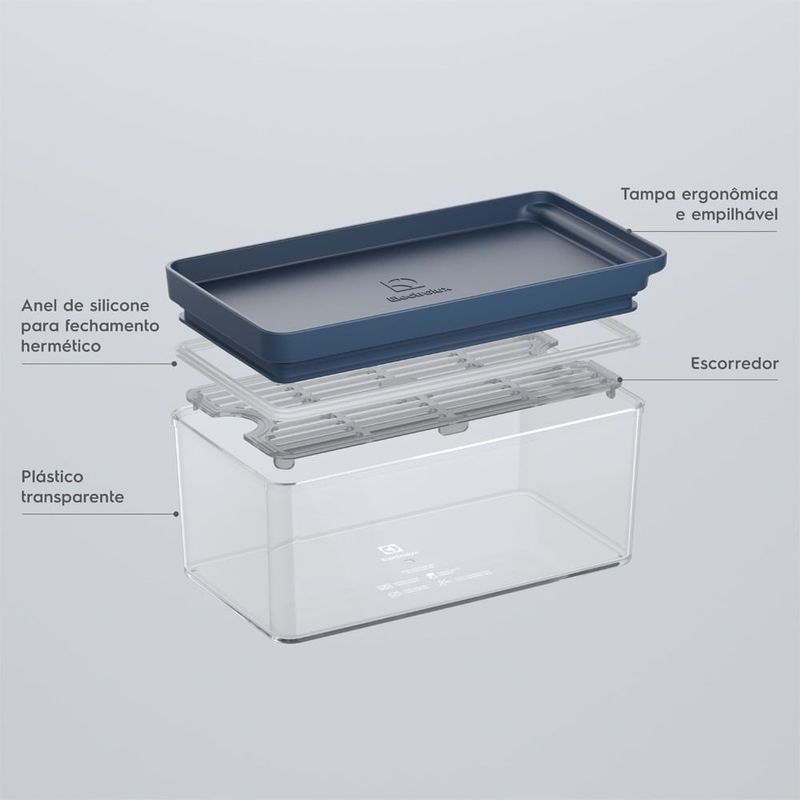 Casa e DecoraçãoUtilidades DomésticasAcessórios de EletroportáteisKit 2 Organizadores de Geladeira Electrolux Experience com Escorredor 1,5L