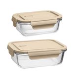 Casa e DecoraçãoUtilidades DomésticasAcessórios para ServirKit 2 Potes Herméticos de Vidro Retangulares Tampa Capuccino Uz Porta Mantimentos