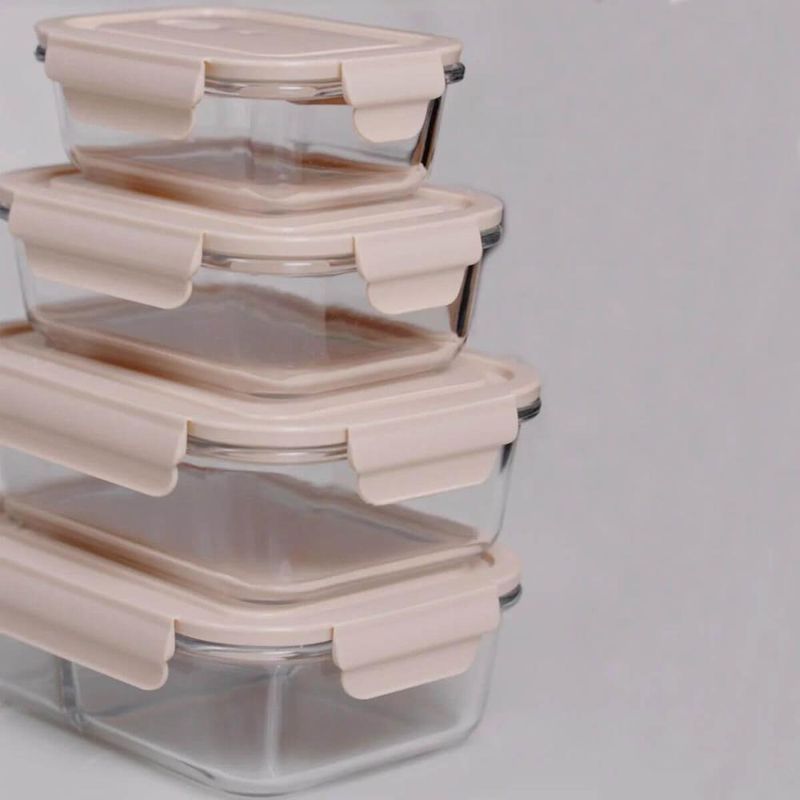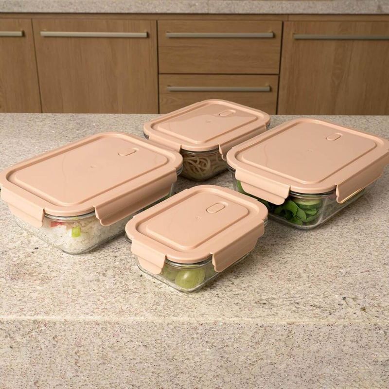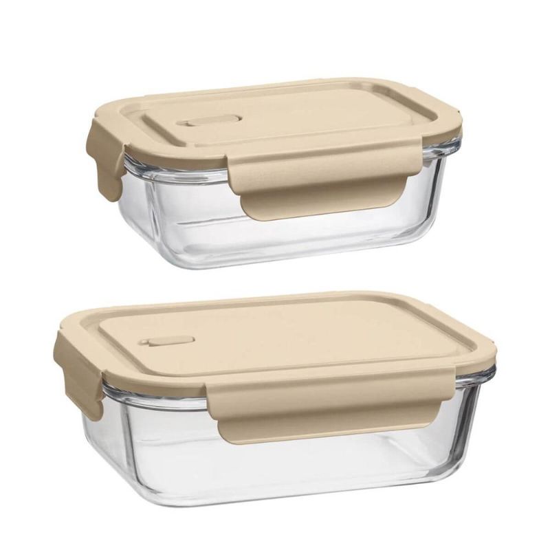 Kit 2 Potes Herméticos de Vidro Retangulares Tampa Capuccino Uz Porta Mantimentos REF: 7898775144806