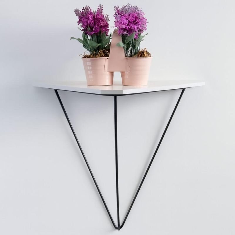 Kit 2 Prateleiras Triangulares com Suporte Aramado Grafite Floreira Decoração Livros Schmitt REF: 7794465226190