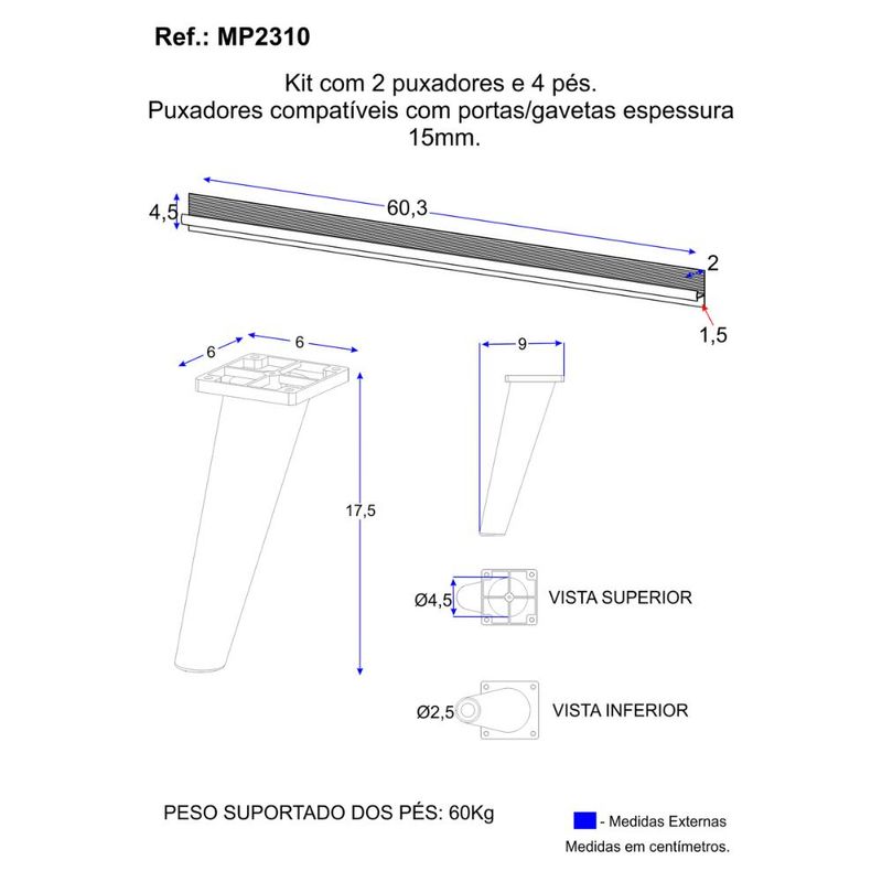 Casa e DecoraçãoMóveisKit 2 Puxadores com 4 Pés Palito Retrô para Paneleiro 62cm Veneza Multimóveis MP2310