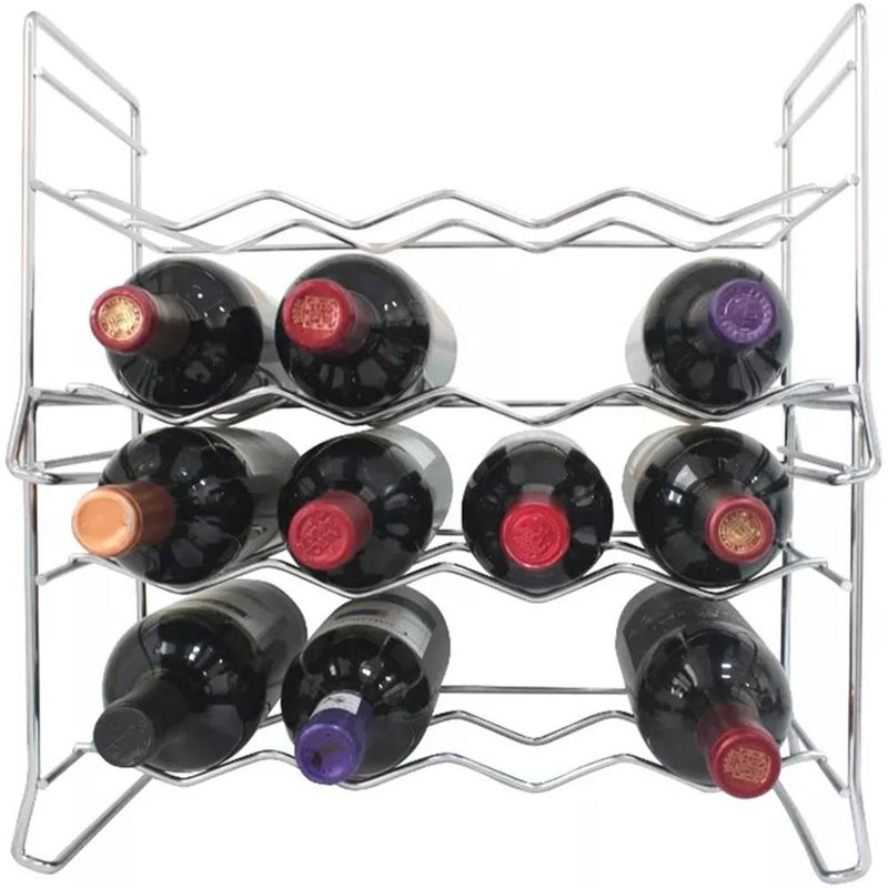 Casa e DecoraçãoUtilidades DomésticasBar e AcessóriosKit 2 Suportes Para 16 Garrafas Adega Empilhável Em Aço Cromado Schmitt