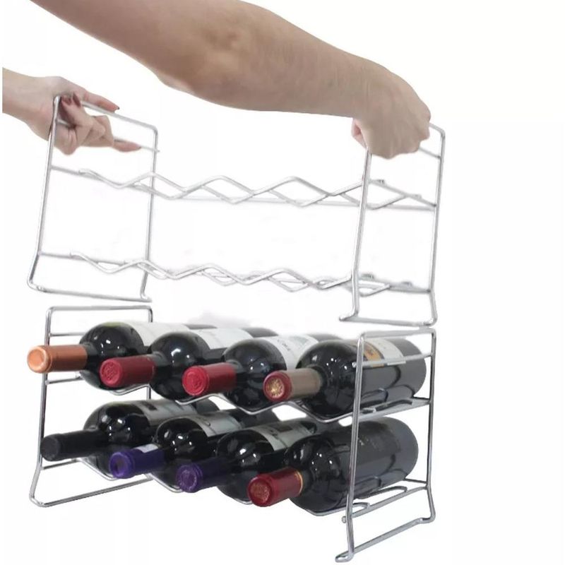 Kit 2 Suportes Para 16 Garrafas Adega Empilhável Em Aço Cromado Schmitt REF: 7797086571533
