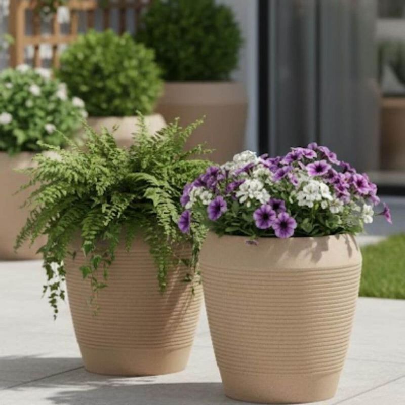 Casa e DecoraçãoDecoraçãoKit 2 Vasos Decorativo Egípcio Flor 39cm Tramontina Polietileno Granito Areia Jardim Varanda
