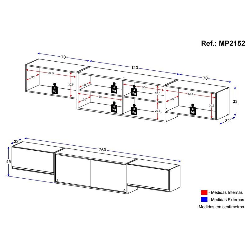 Casa e DecoraçãoMóveisArmário de CozinhaKit 3 Armários de Cozinha Aéreos 4 Portas Veneza Multimóveis MP2152