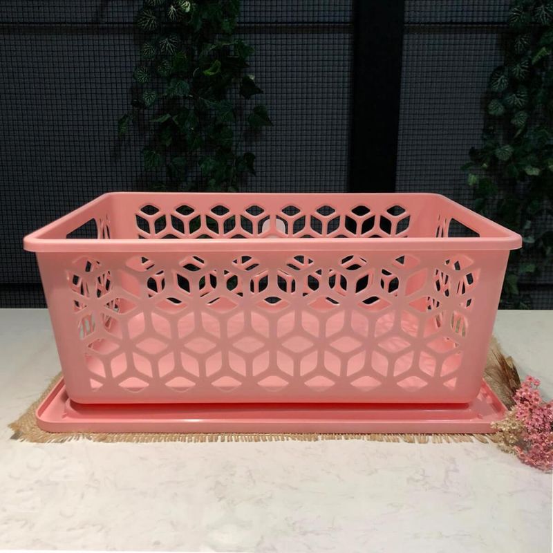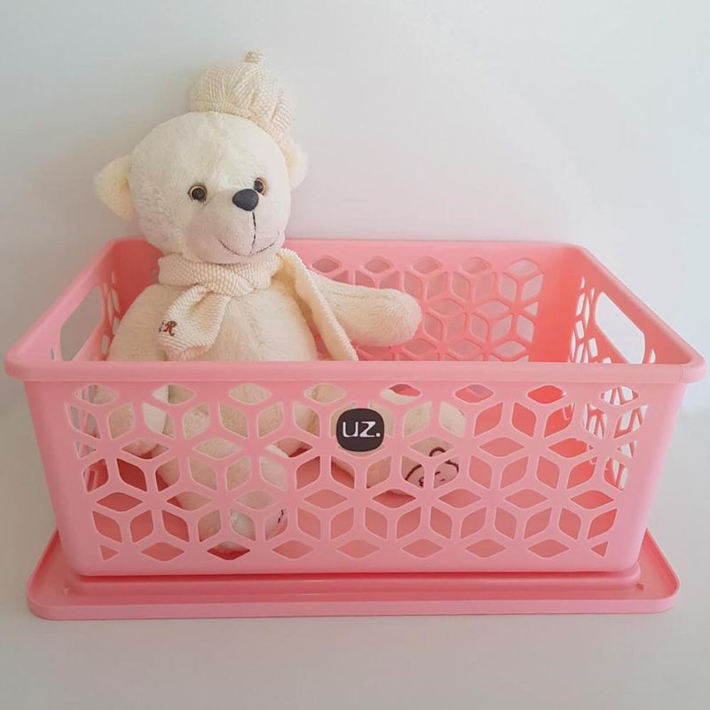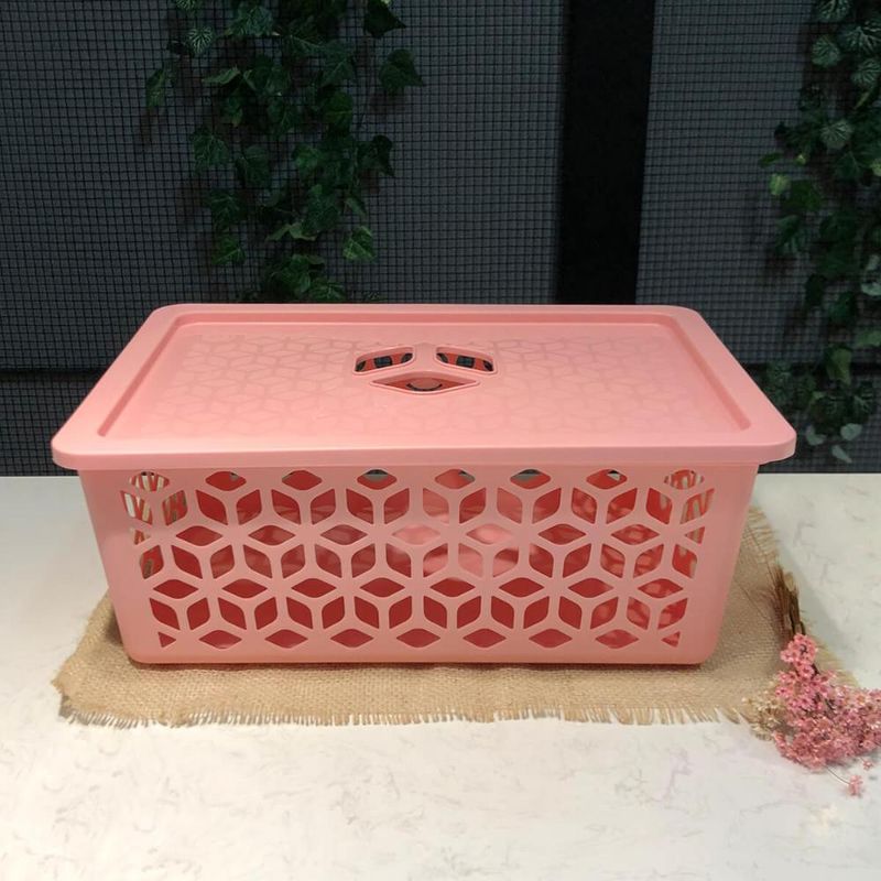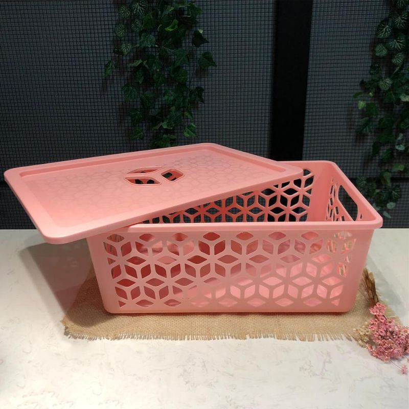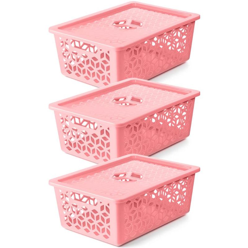Kit 3 Cestos Organizadores Empilháveis com Tampa Caixa Organizadora Plástica Rosa REF: 7798138263222