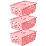 Casa e DecoraçãoDecoraçãoOrganizadoresKit 3 Cestos Organizadores Empilháveis com Tampa Caixa Organizadora Plástica Rosa